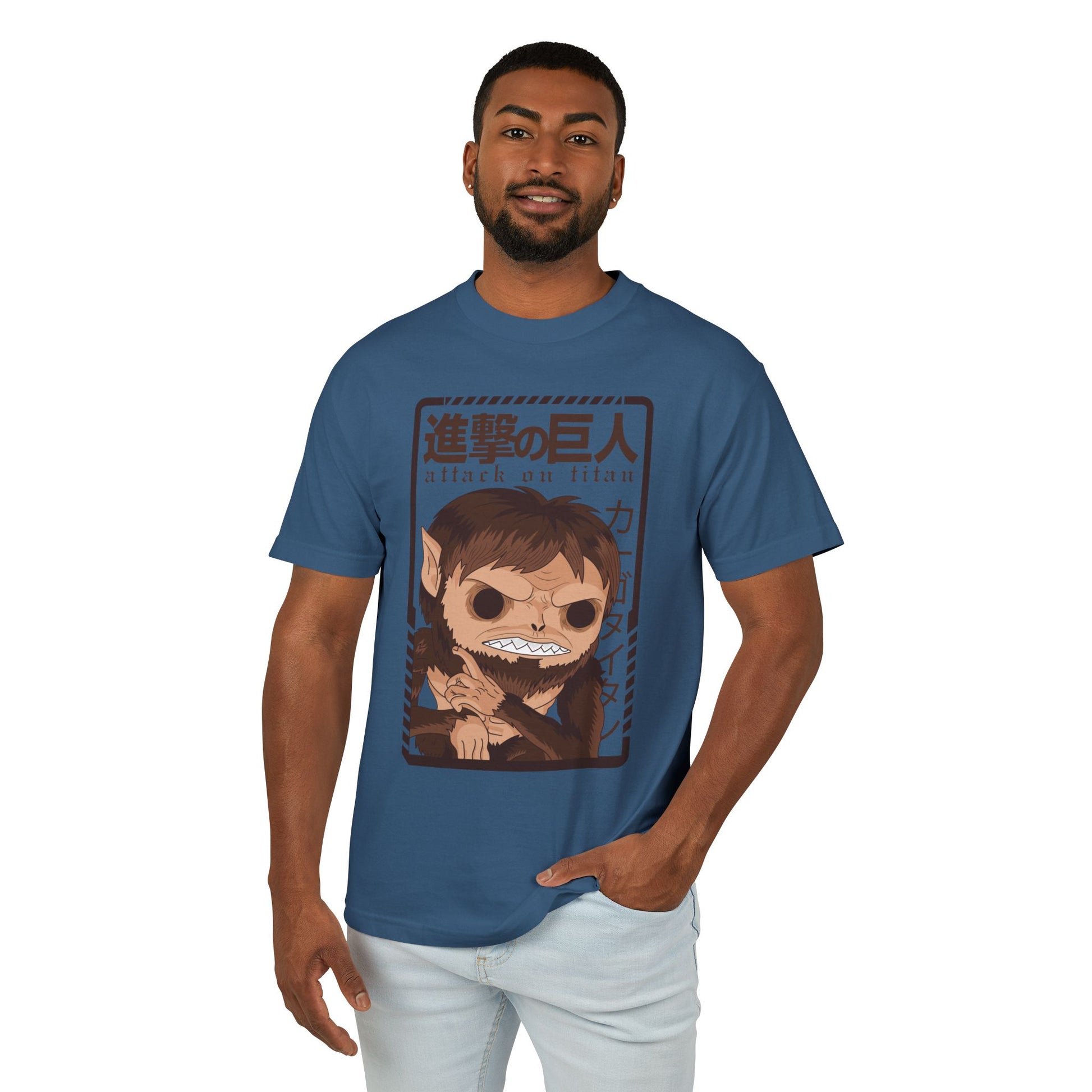 Show off your love for Attack on Titan with this Beast Titan themed Tee. Made from 100% cotton, garment-dyed fabric for a vintage look and feel. The wide rib collar and relaxed fit make it comfortable for everyday wear. Perfect for fans of AOT and anime enthusiasts. Great for casual outings, conventions, and as a gift for birthdays or holidays.