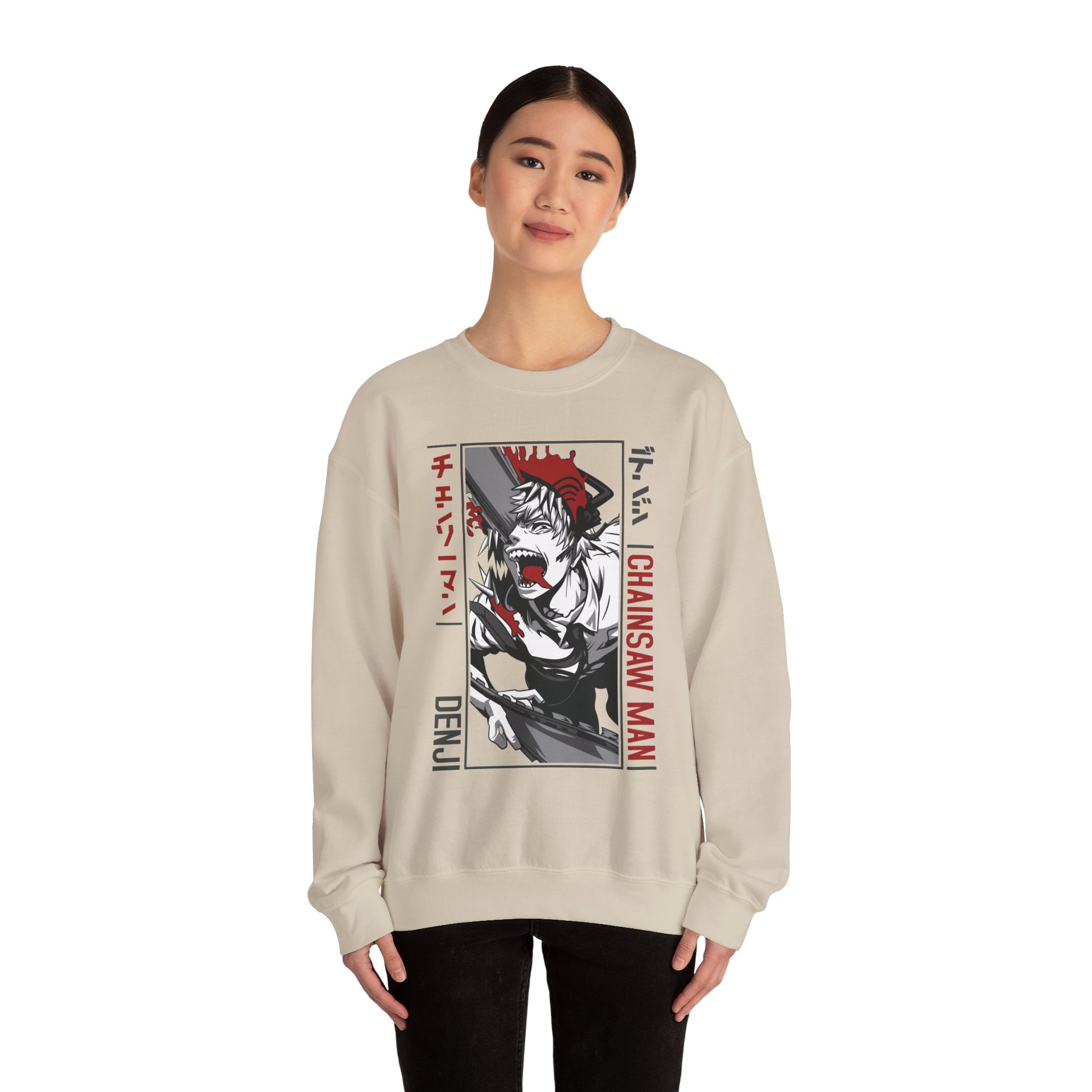 The Chainsaw Man Unisex Heavy Blend™ Crewneck Sweatshirt offers a cozy and comfortable feel, perfect for the colder months. With its classic fit and clean-cut style, this sweatshirt is ideal for adults looking for durability and style. Whether worn casually or for a themed holiday celebration, this sweatshirt is a versatile addition to any wardrobe.