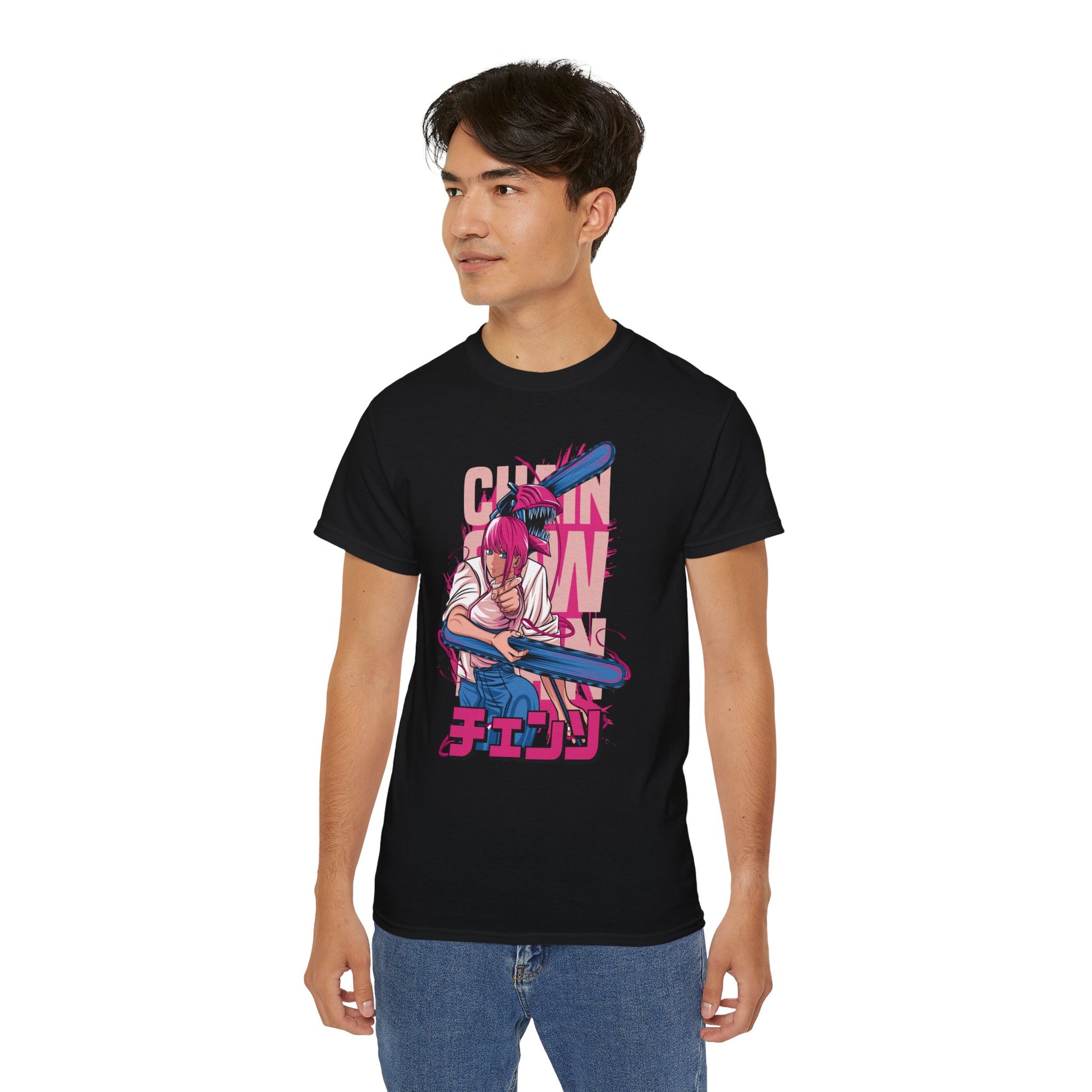 The Chainsaw Man Unisex Ultra Cotton Tee gives off an edgy and cool vibe, perfect for fans of the manga series. It is a versatile wardrobe staple suitable for everyday wear, and its bigger size provides extra comfort. Ideal for adults looking to add a touch of personality to their outfits, especially for comic con events, anime conventions, and casual hangouts with friends.