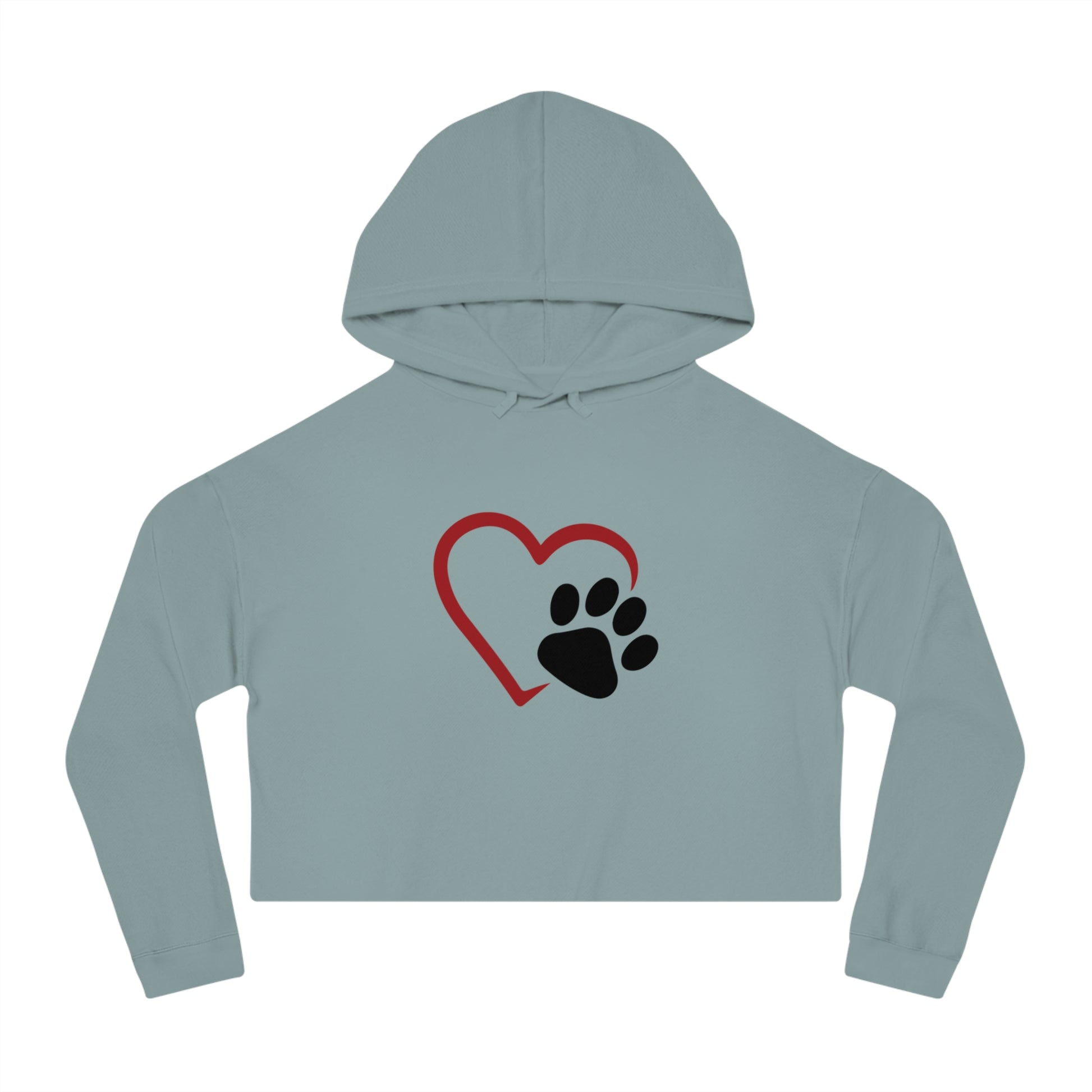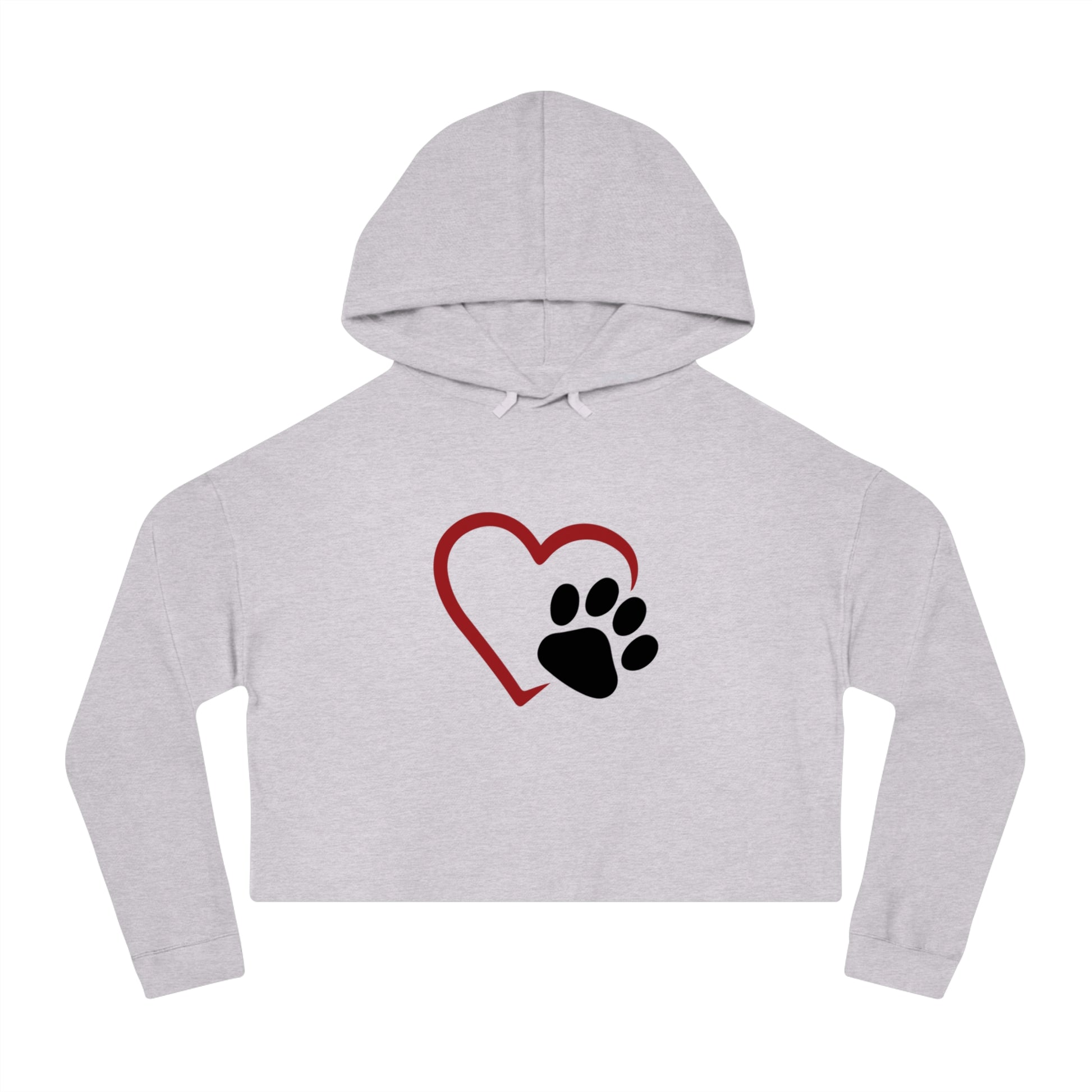 Cropped Hooded Sweatshirt with Heart and Paw Design - Perfect for Pet Lovers