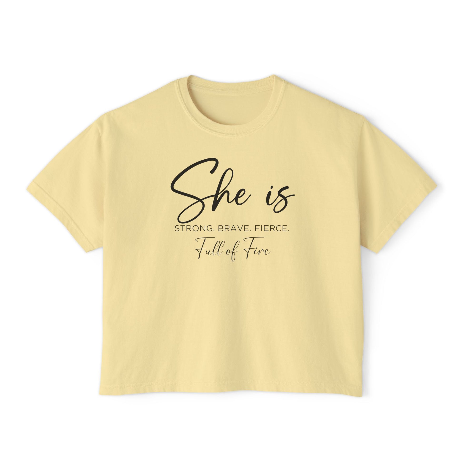 Full of fire Women's Boxy Tee is perfect for those looking to make a bold statement. The boxy fit and vintage pigment dye colors give off a fierce and edgy vibe, ideal for women who want to stand out. This tee is great for casual wear, concerts, festivals, and any occasion where you want to show off your unique style.