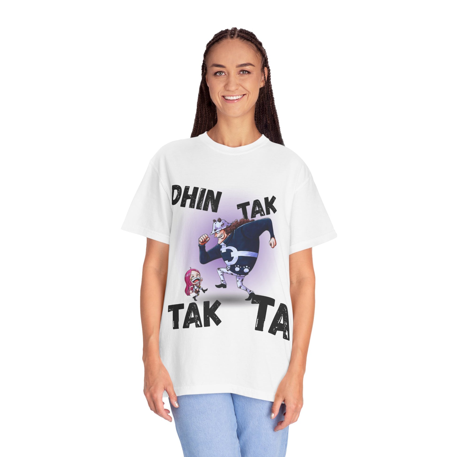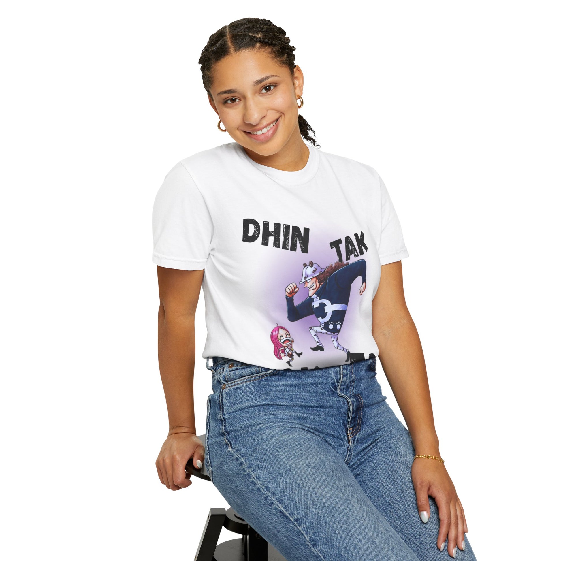 Playful and fun Unisex T-shirt featuring a unique 'Kuma Dance' typography design. This comfortable garment-dyed tee is perfect for anyone who loves to express their playful side through fashion. Suitable for casual wear or as a statement piece for Anime lovers and those who enjoy quirky designs. Ideal for anime events, birthdays, dance events, and everyday wear.