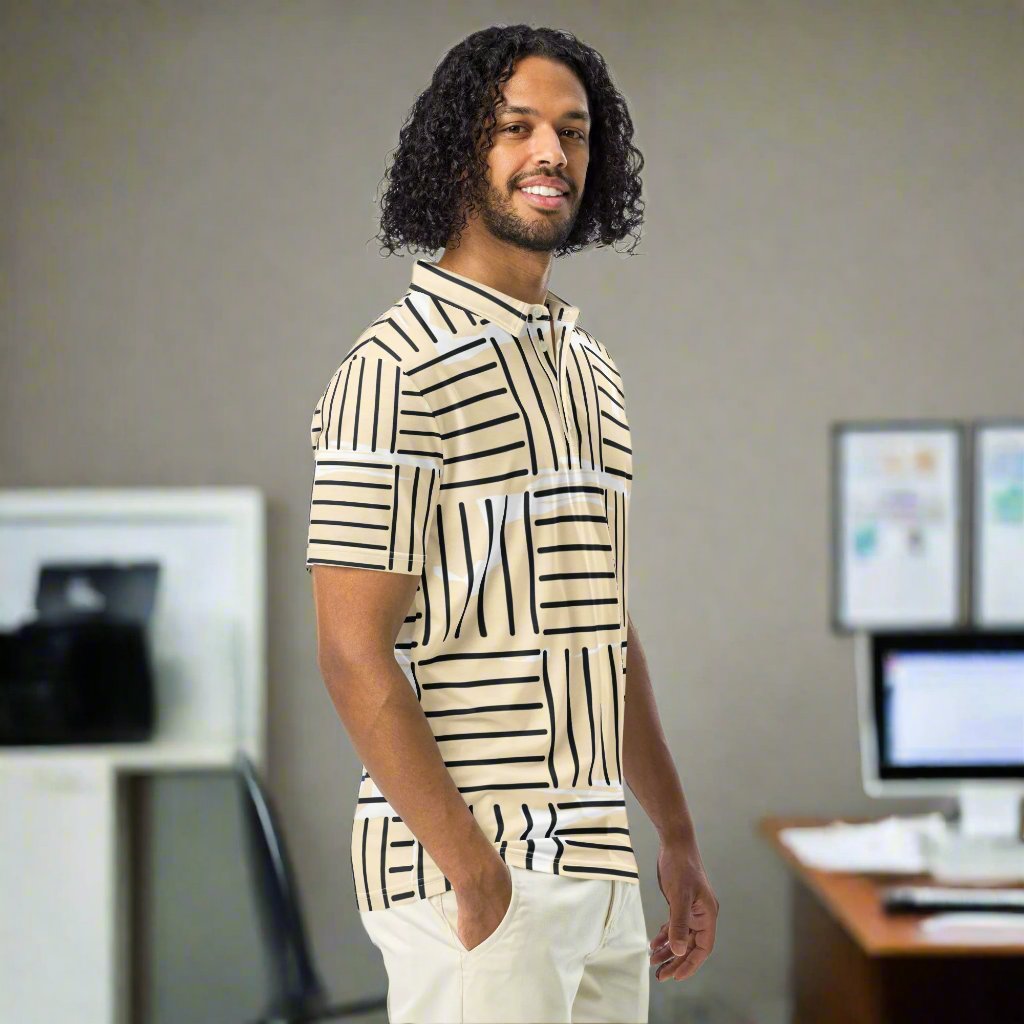 This shirt features a sleek slim fit that offers a modern and polished look, complemented by a classic polo collar. Made from soft, breathable, and lightweight fabric, it's ideal for various occasions—from office casual wear to sports and social events.