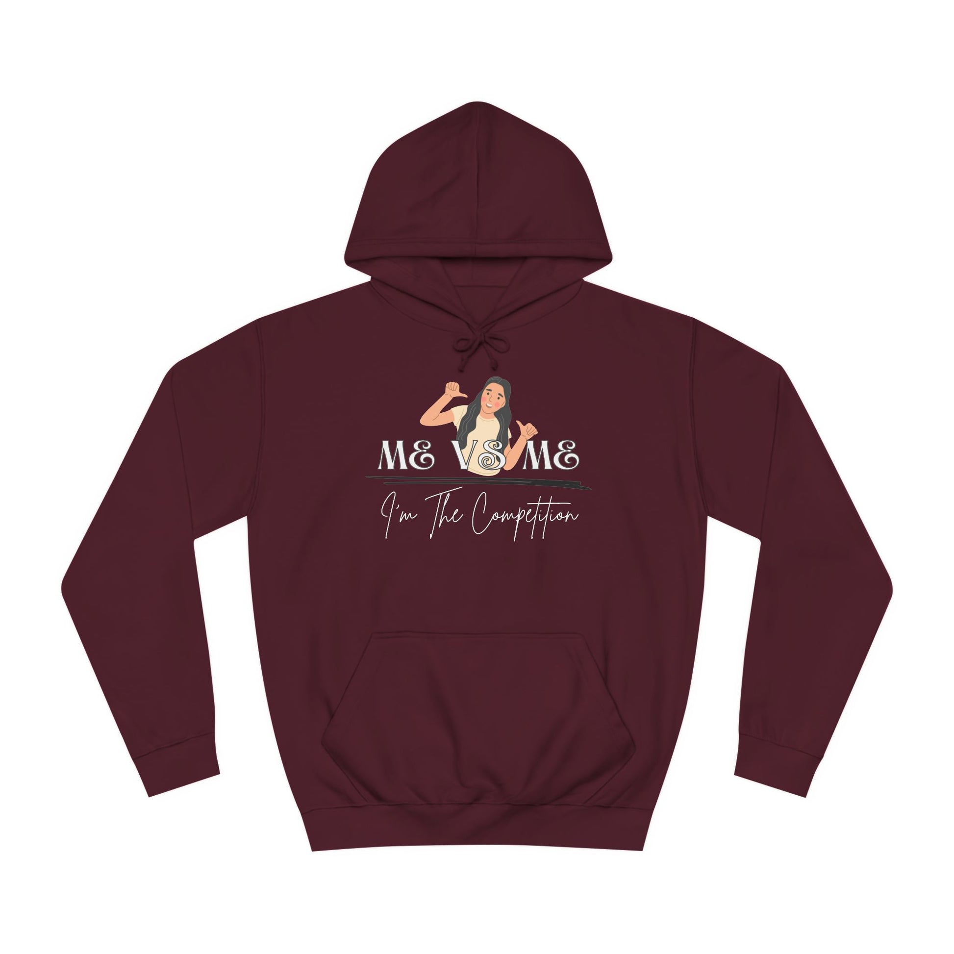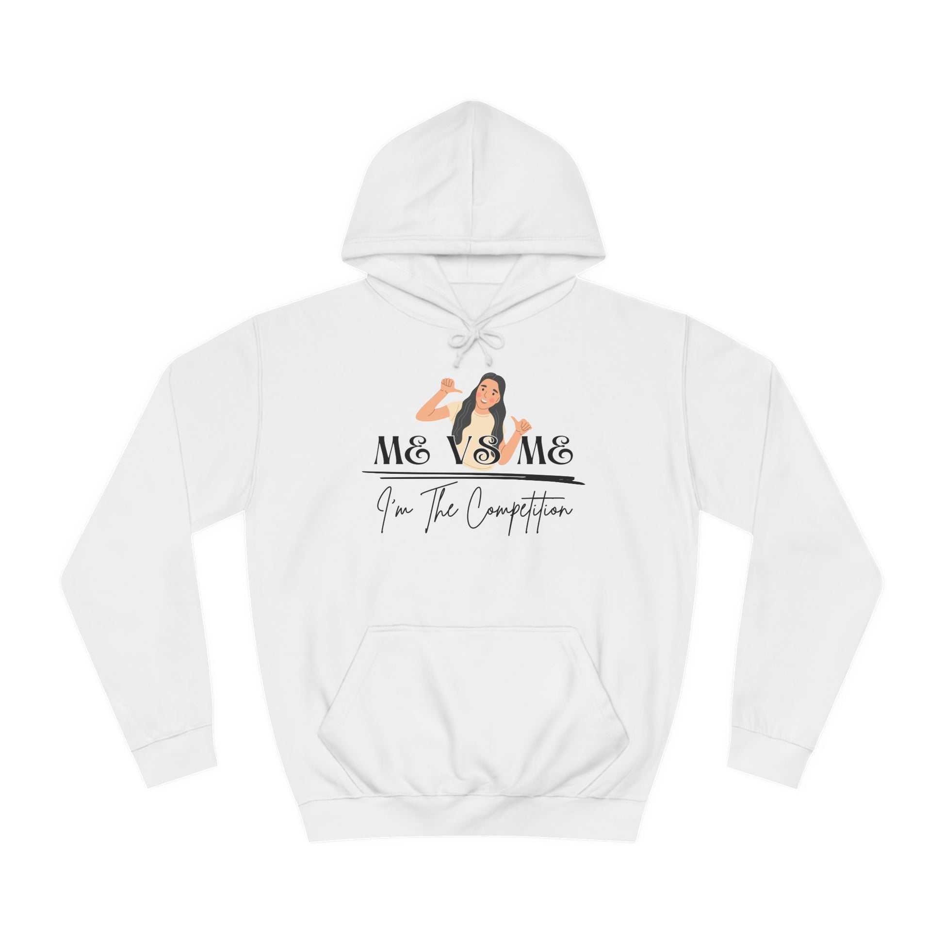 This Me Vs Me Women College Hoodie exudes a sense of empowerment and self-growth, perfect for those seeking motivation and inspiration. It's cozy and comfortable, ideal for lounging at home or running errands. This hoodie is relevant for those interested in self-improvement and personal development. Perfect for gifting on birthdays, during personal milestones, or as a reminder to keep moving forward.