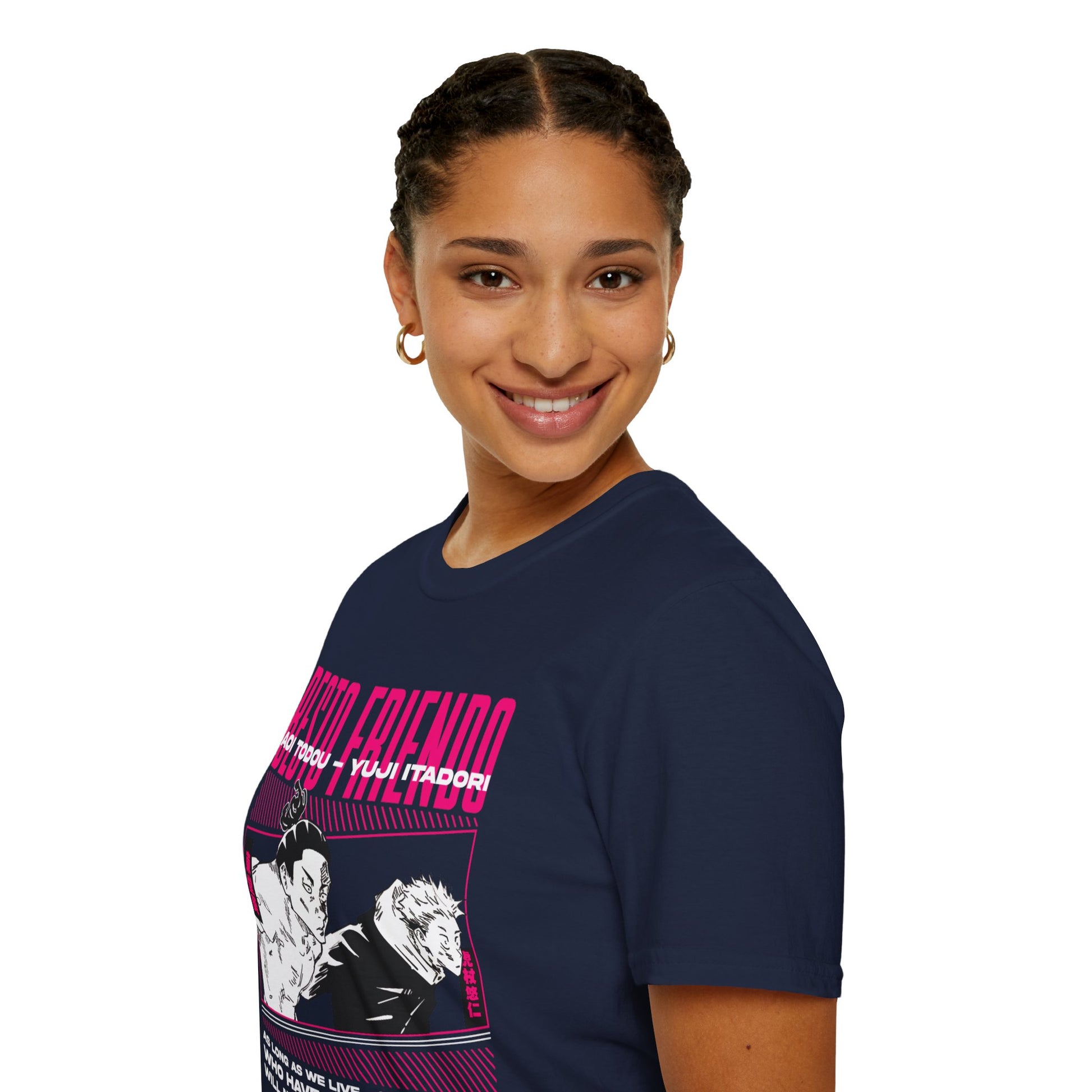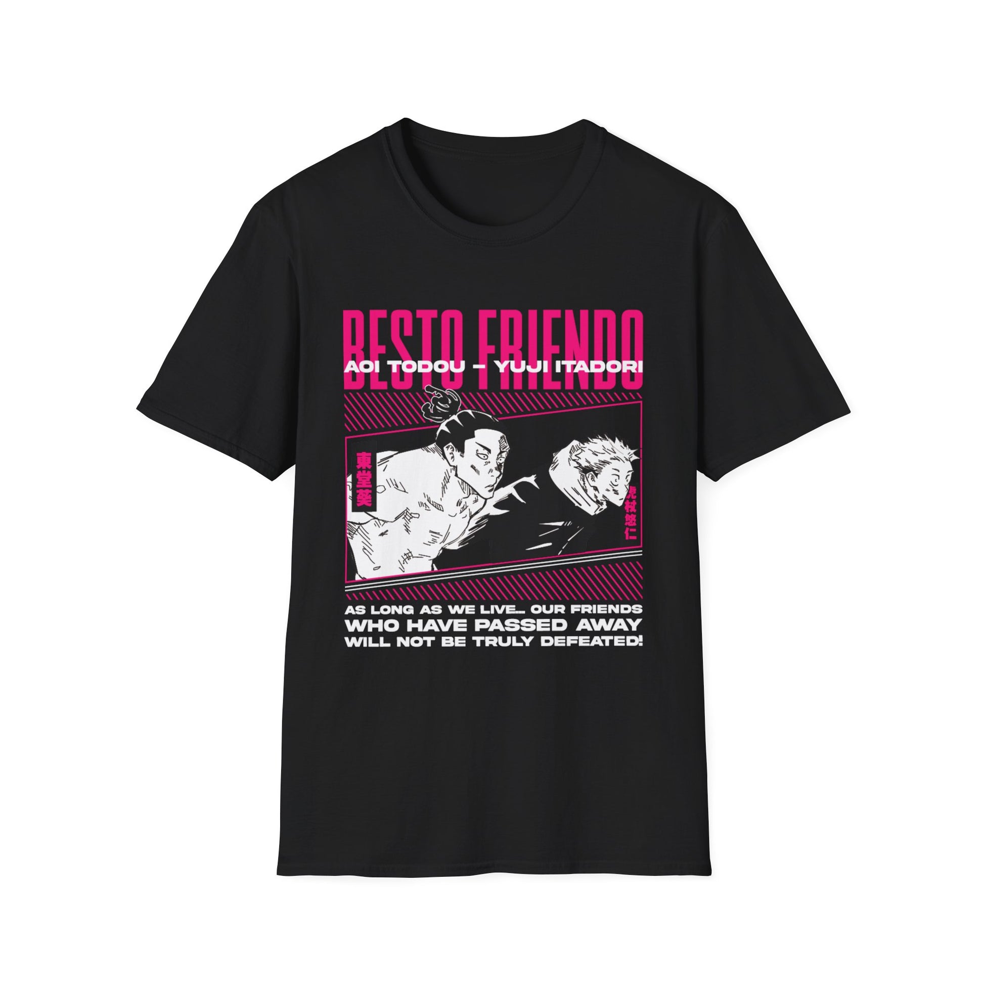 Celebrate the bond of friendship with this Besto Friendo Unisex Softstyle T-Shirt featuring Yuji and Todo from JJK. Made from 100% ring-spun cotton, this lightweight and durable shirt is perfect for any occasion, formal or casual. It is designed for adults and provides a comfortable fit all year round. Ideal for fans of JJK and those looking to add a touch of friendship to their wardrobe.