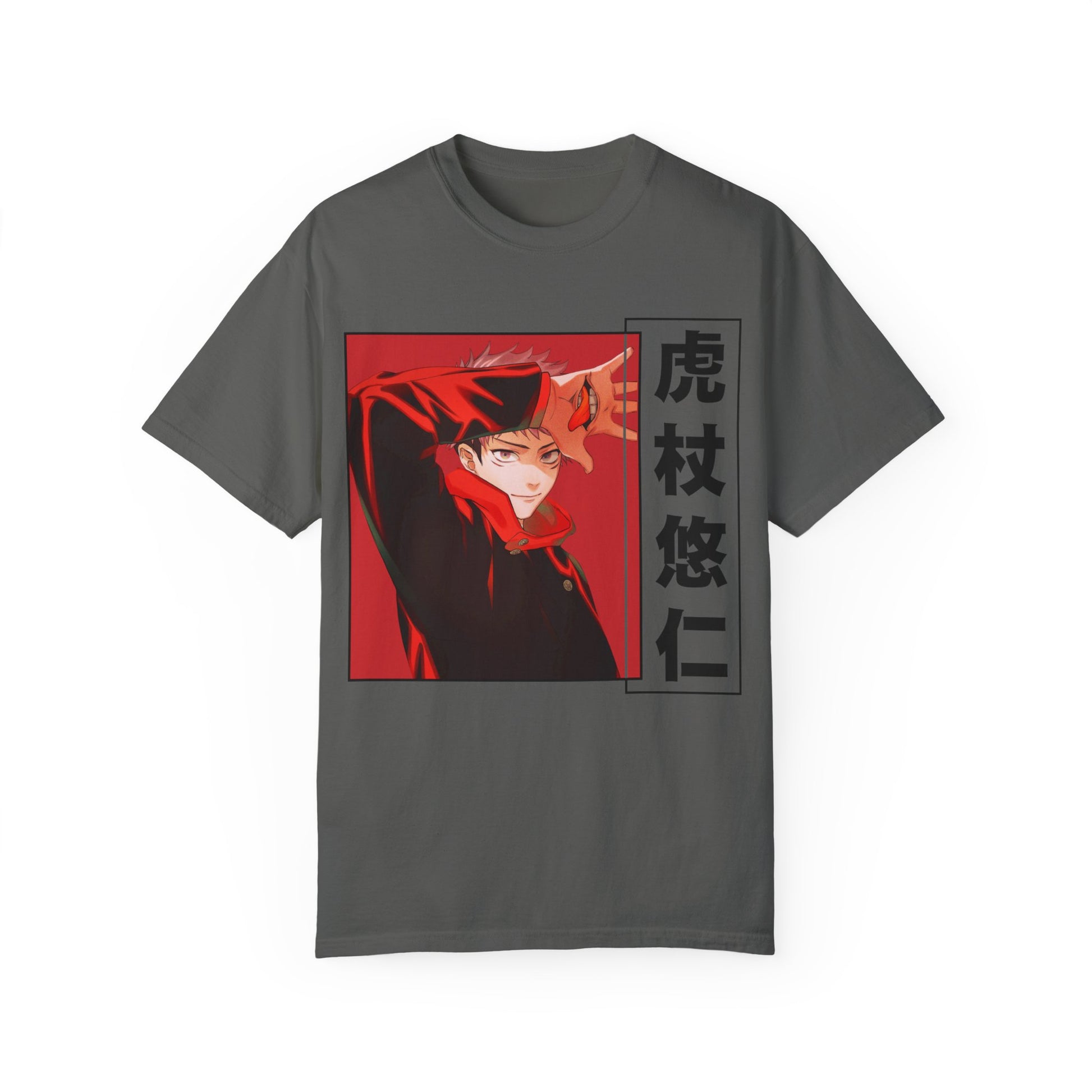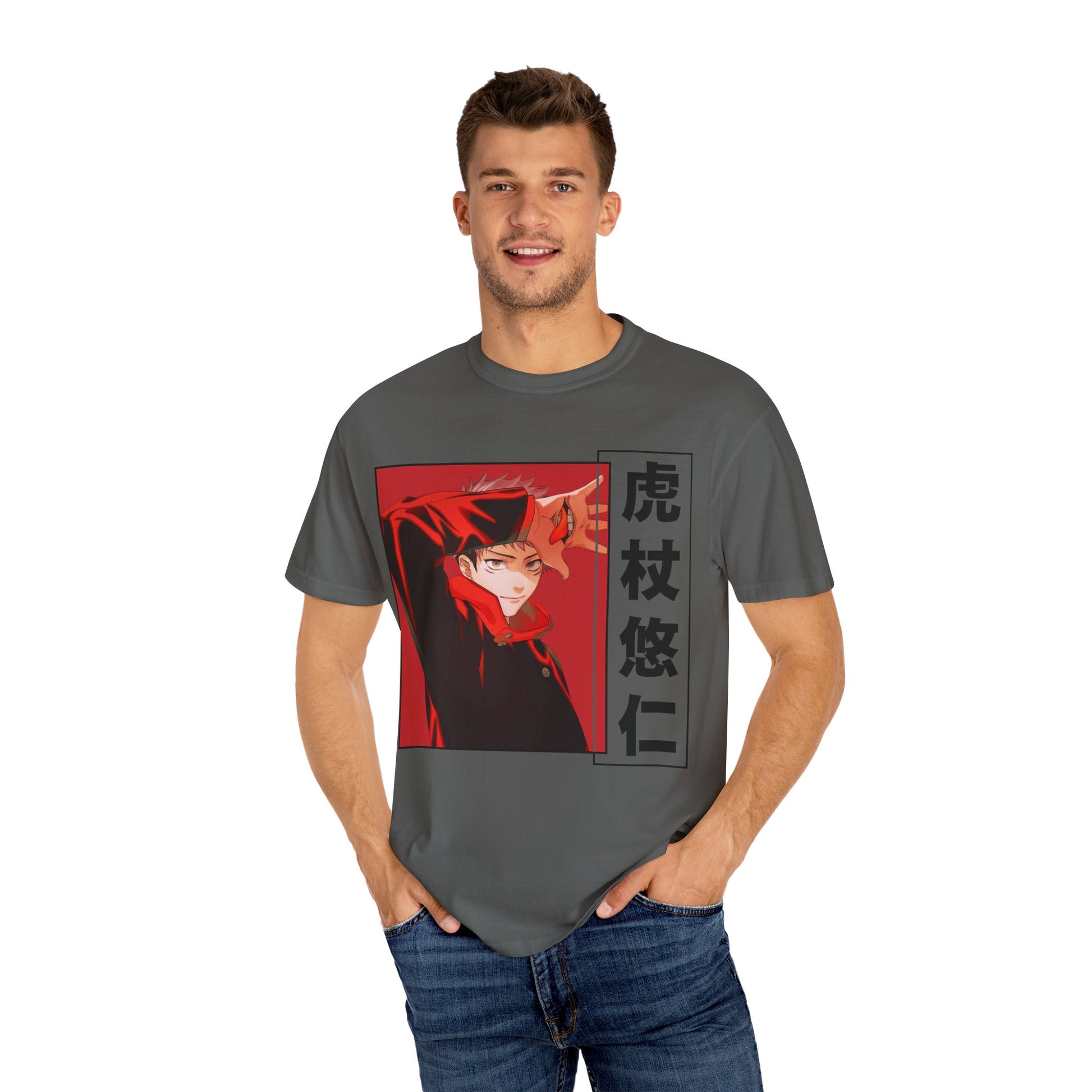 This unisex garment-dyed t-shirt features Yuji Itadori from Jujutsu Kaisen printed on it, giving off a cool and stylish vibe for anime fans. Perfect for casual wear or as a statement piece, this t-shirt is a must-have for Jujutsu Kaisen enthusiasts and anime lovers. Ideal for birthdays, comic cons, anime conventions, and everyday wear.